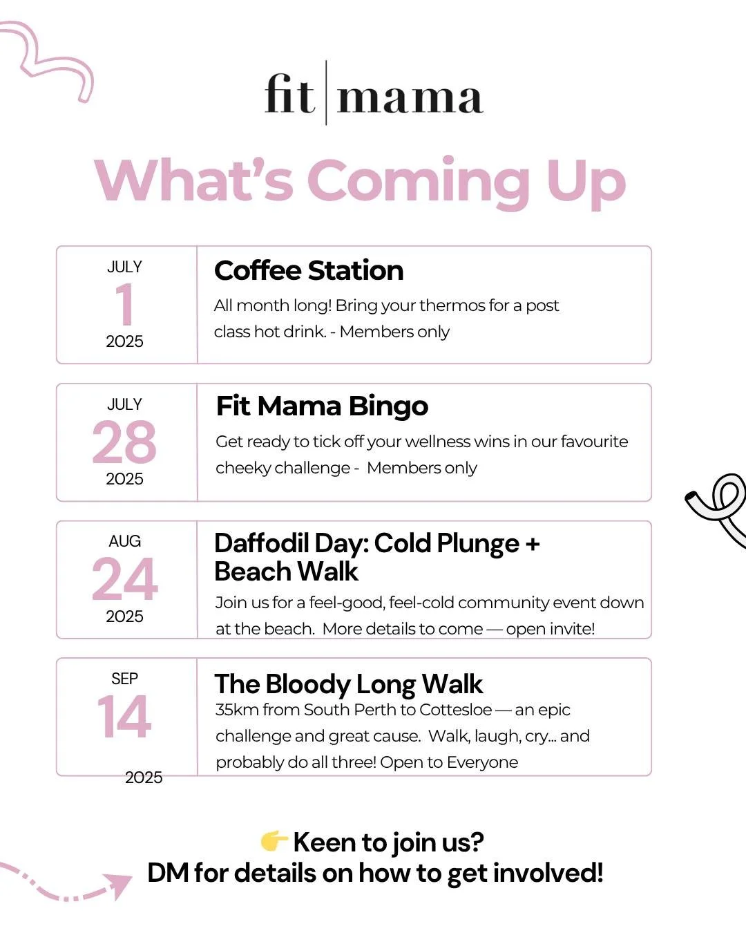 Join our mailing list and be the first to receive exclusive tips, healthy recipes, and inspiration tailored just for mums like you. Whether you're navigating postnatal recovery, looking for simple ways to boost your energy, or need a little motivation to stay active, our weekly emails are packed with everything you need to feel strong, confident, and supported on your motherhood journey. Plus, you’ll get access to special offers and updates on our latest programs and events. Sign up today and let’s thrive together!